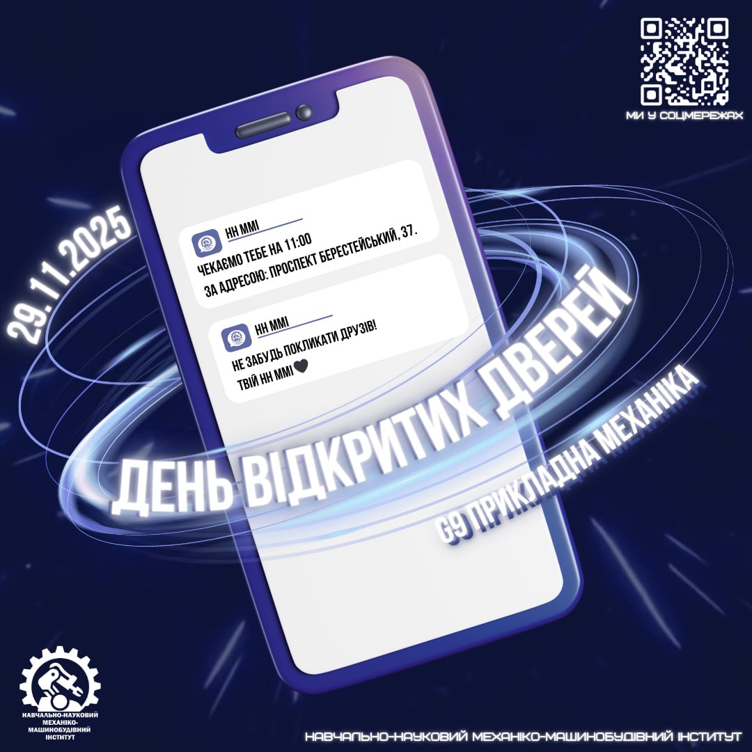 📅 Навчально-науковий механіко-машинобудівний інститут (НН ММІ) запрошує всіх охочих відвідати День відкритих дверей
